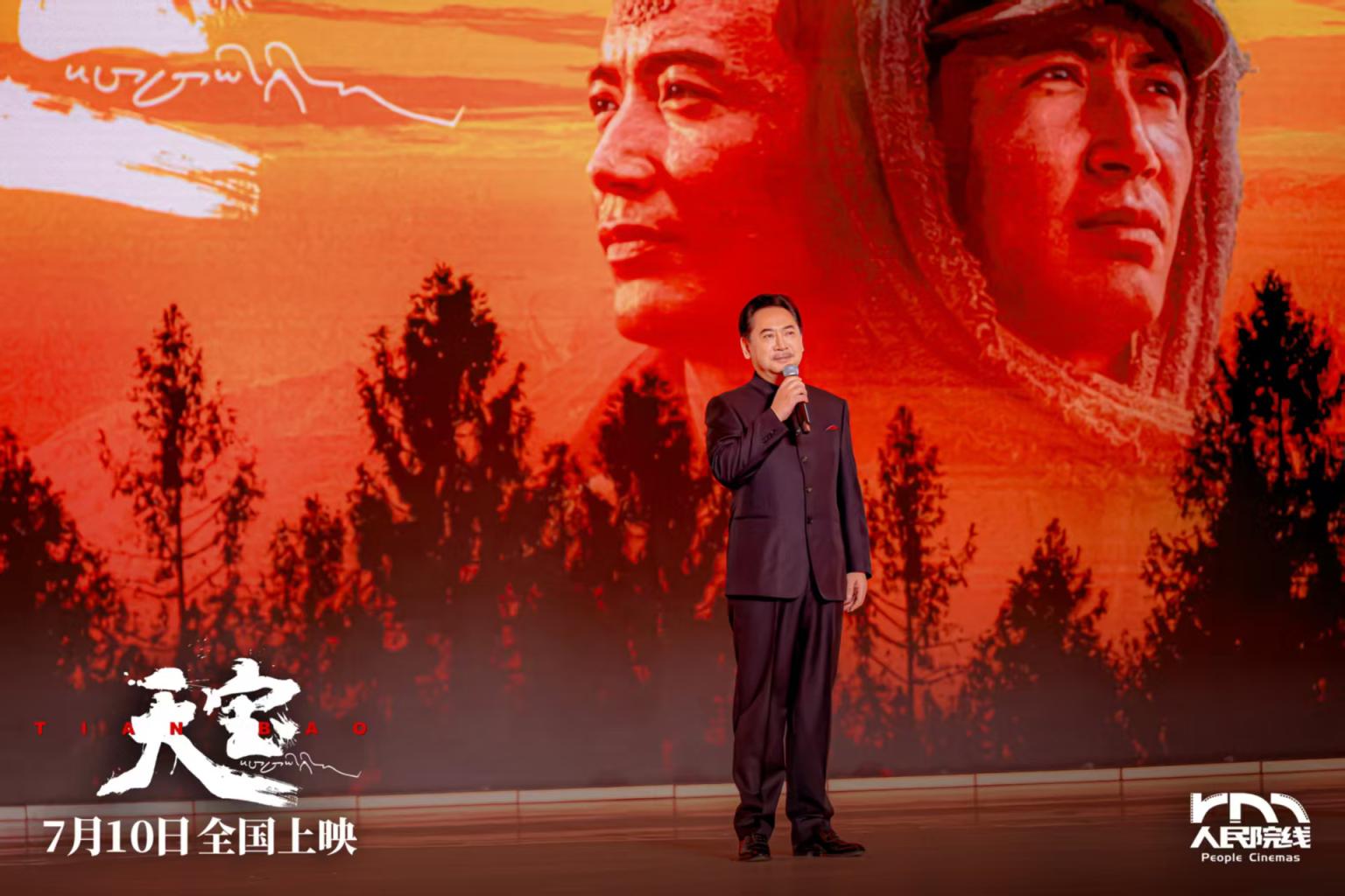 发布会现场,刘劲以饱含深情的诗意语言,向观众诚挚推荐《天宝》:“一位本该在酥油灯前诵经修行的藏族扎巴,在民族危亡与人民苦难的感召下,毅然脱下僧袍,加入红军,成为坚定的红军战士。这是一场信仰的燃情赞歌,他在烽火连天中屹立,将个人的悲欢融入民族的苦难与辉煌,用热血与坚韧谱写了一曲不朽的英雄史诗。在《天宝》的银幕世界里,你将见证一个藏族扎巴如何逆天改命,如何在时代的洪流中坚守信仰,绽放出生命最耀眼的光芒。”